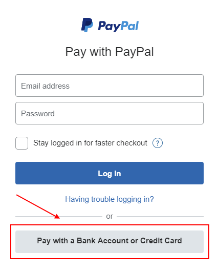 You do not need a PayPal account to purchase from our website. Simply add your item(s) to the cart, and then click the cart's "checkout" button. When you get to the PayPal screen, click the button highlighted below. You can check out as a "guest" without creating an account. PayPal is an extremely secure payment processor.